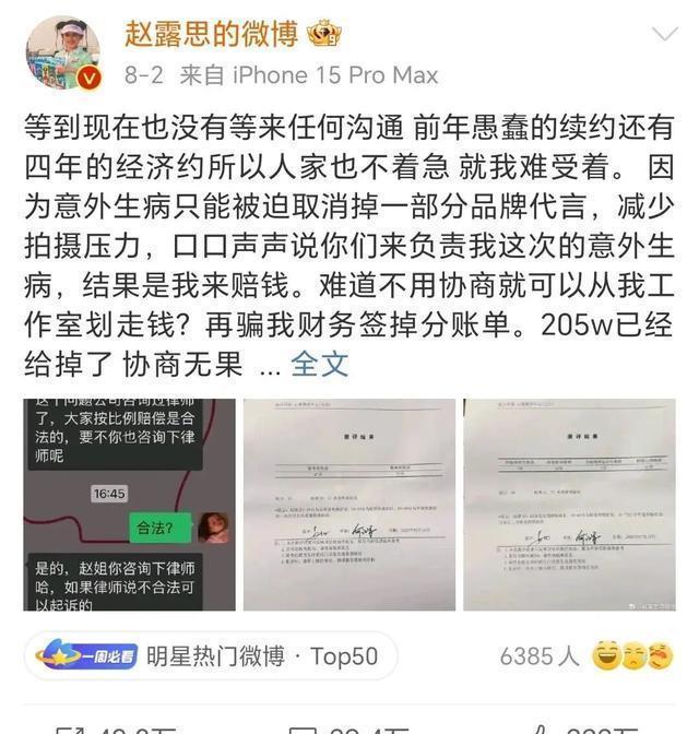 赵露思在微博发布合同纠纷相关内容 今年8月,长期积累的矛盾终于被摆在了台面上,赵露思发布了一篇微博长文,直接开撕银河酷娱,放出狠话“不要你们封杀我,我不干了”。 赵露思控诉的核心有三点: 一、年初因抑郁症发作无法工作,银河酷娱曾承诺会承担相应赔偿,但没有兑现; 二、未经许可,银河酷娱擅自划走其工作室账面上的205万元,作为《恋人》拍摄中断的赔偿金; 三、银河酷娱把控赵露思工作室运营权,用“封杀”作为威胁。 作为看客,很难说双方谁占理。 单看事实,银河酷娱在赵露思最脆弱的时候划走资金、收回工作室运营权、几乎将团队遣散;而赵露思方认为银河酷娱曾承诺为其善后,因此不用付《恋人》赔偿金。 不考虑抑郁症、“封杀”等情绪因素,单论赔偿金问题,有相关专家解释过,通常情况下艺人生病导致剧组受损,艺人应该和经纪公司共同分担赔偿,除非赵露思能拿出公司承诺过不让她赔偿的证据。 显然就算有过承诺也是口头的,不然赵露思不至于大张旗鼓地掀桌。