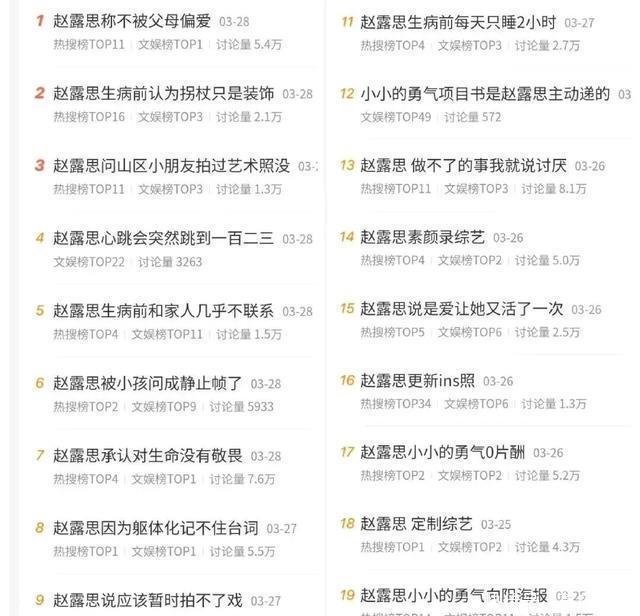 赵露思生病以来,上过热搜的部分内容 据统计自赵露思曝出生病以来,全平台总共上了287个热搜。有人质疑赵露思及其团队博同情卖惨,也有人将矛头直指其经纪公司银河酷娱。 自从2020年赵露思凭借《传闻中的陈芊芊》爆火后,她就成了银河酷娱的摇钱树,数据显示,赵露思赚的钱占据公司总收入的80%以上。 凭一己之力养活整家公司。 从银河酷娱的角度来看,公司唯一拿得出手的艺人只有赵露思,手握源源不断的资源,趁势多拍几部戏、在娱乐圈彻底站住脚跟完全符合资本家的逻辑。而赵露思虽然累,但升咖后的回报却极高,从2023年赵露思和银河酷娱续约便可见端倪。 说到底,赵露思和银河酷娱的决裂始自利益分配不均。